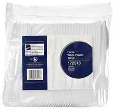 SMART CHOICE DISPOSABLE FORK PLASTIC WHITE PACK 100