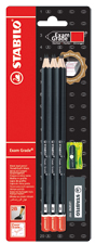 • Set also includes 1 x eraser, and 1 x pencil sharpener.