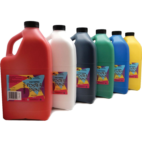 5 STAR TEMPERA POSTER PAINT WASHABLE BOTTLE 2L WHITE