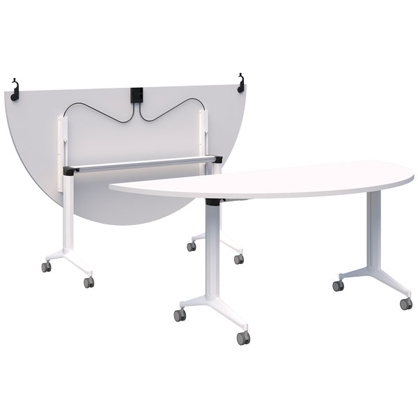 ACCENT BOOST SEMI CIRCLE FLIP TABLE W1800 X D900 X H745MM WHITE BASE CLASSIC OAK TOP
