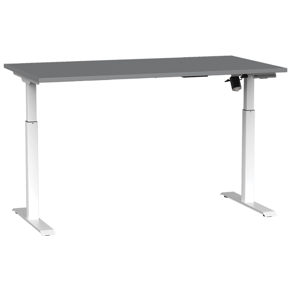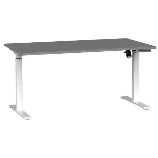 AGILE BOOST HEIGHT ADJUSTABLE SINGLE SIDED ELECTRICAL DESK W1500 X D800 X H720-1200MM WHITE FRAME SILVER TOP