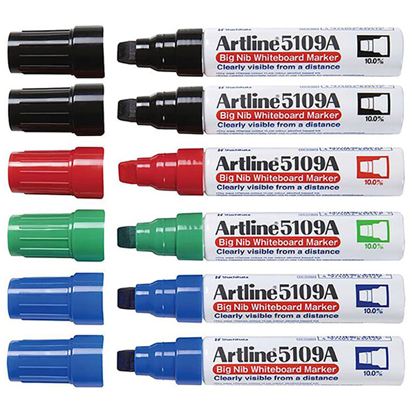 ARTLINE 5109A WHITEBOARD MARKER CHISEL 10MM ASSORTED BOX 6