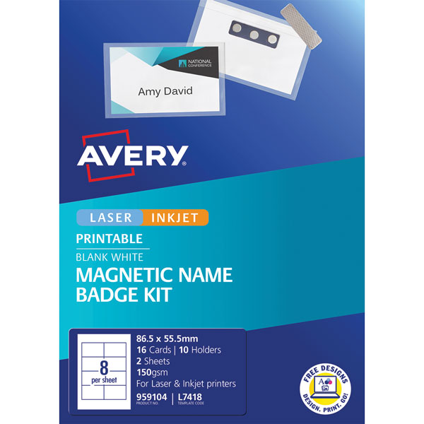 AVERY L7418 MAGNETIC NAME BADGE KIT 86.5X55.5MM 8UP PACK 10