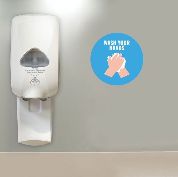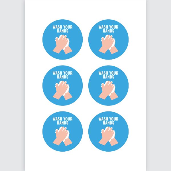 AVERY PRE PRINTED SELF ADHESIVE SIGN WASH YOUR HANDS 70MM ROUND PACK 5