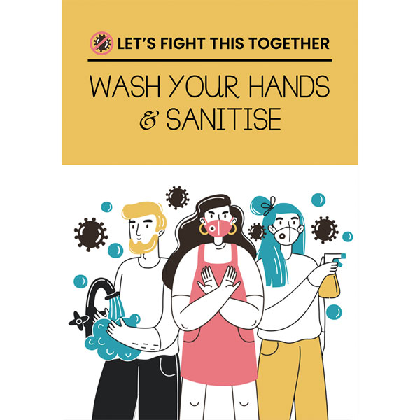 AVERY PRE PRINTED SELF ADHESIVE SIGN WASH YOUR HANDS AND SANITISE 1UP A4 PACK 5
