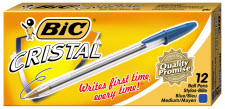 BIC CRISTAL BALLPOINT PENS MEDIUM BLUE BOX 12