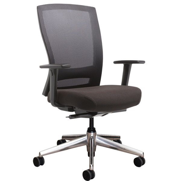 BURO MENTOR OFFICE CHAIR MESH BACK WITH ARMS POLISHED ALUMINUM BASE BLACK