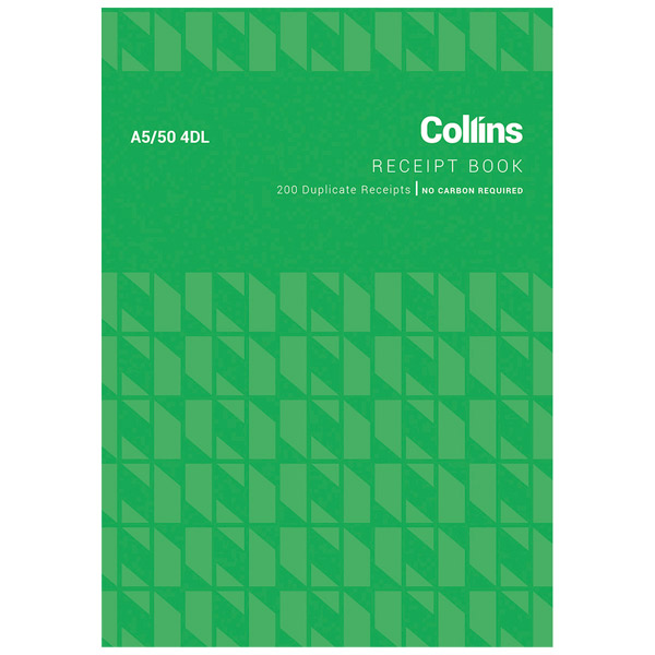 COLLINS RECEIPT BOOK 4 TO VIEW 4 DL DUPLICATE NO CARBON REQUIRED A5 50LEAF