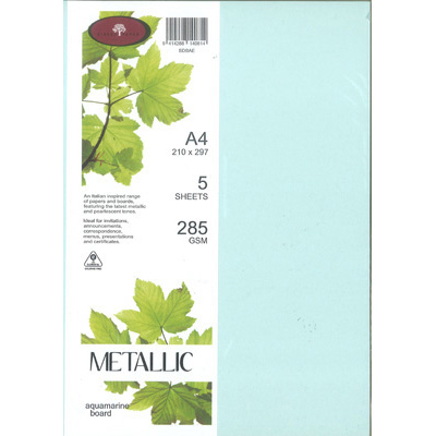 COLOURED PAPER A4 285GSM METALLIC AQUAMARINE PACK 5
