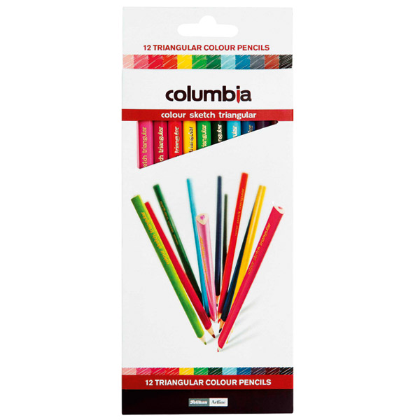 COLUMBIA COLOURSKETCH TRIANGULAR PENCIL ASSORTED PACK 12