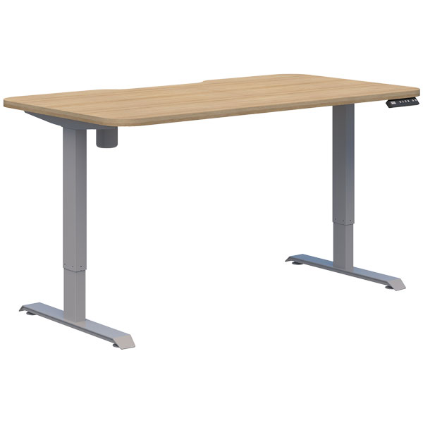 DUO II ELECTRIC DESK W1200 X 700MM SILVER FRAME CLASSIC OAK TOP RADIUS CORNERS