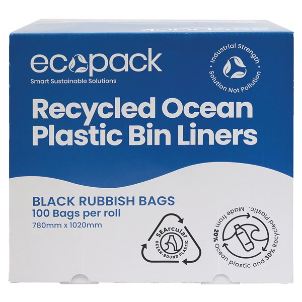 ECOPACK OCEAN PLASTIC BIN LINER BLACK 80L DISPENSER BOX 100