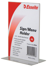 ESSELTE SIGN / MENU HOLDER DOUBLE SIDED PORTRAIT A6 CLEAR