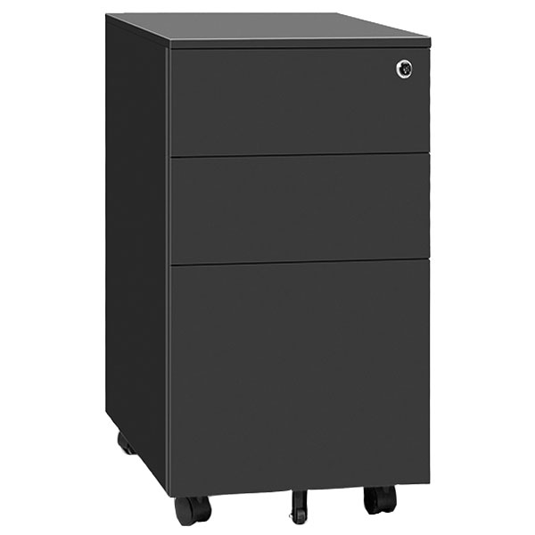 EUROPLAN PROCEED SLIMLINE MOBILE 2 DRAWER 1 FILE W310 X D500 X H600MM BLACK