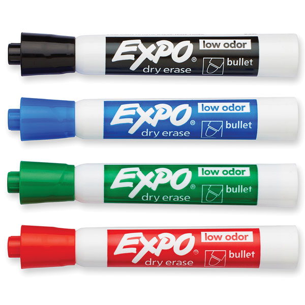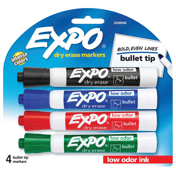 EXPO WHITEBOARD MARKER BROAD BULLET TIP ASSORTED PACK 4
