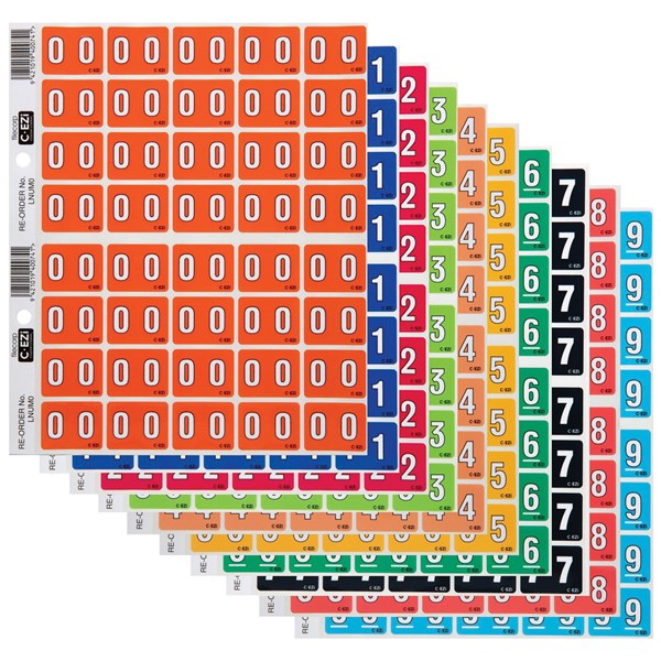 FILECORP C-EZI NUMERIC LABEL 0-9 03FCHLNUM 40 LABELS PER NUMBER PACK 10