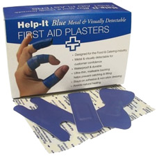 HELP-IT PLASTERS METAL DETECTABLE WATERPROOF 60 STANDARD, 20 F/TIP, 20 KNUCKLE BLUE BOX 100