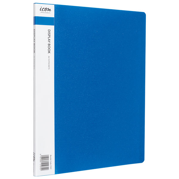 ICON DISPLAY BOOK A4 WITH INSERT SPINE 10 POCKET BLUE