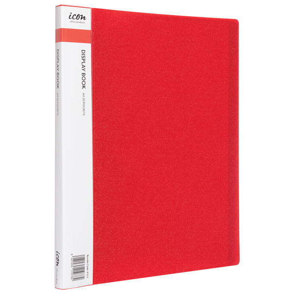 ICON DISPLAY BOOK A4 WITH INSERT SPINE 20 POCKET RED