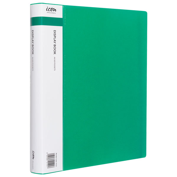 ICON DISPLAY BOOK A4 WITH INSERT SPINE 60 POCKET GREEN