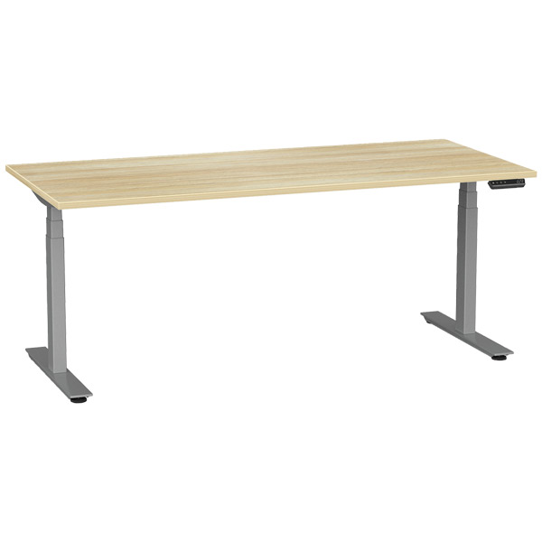 KNIGHT AGILE PRO HEIGHT ADJUSTABLE DESK ELECTRIC 3 COLUMN W1800 X D800 X H620-1270MM SILVER FRAME ATLANTIC OAK TOP