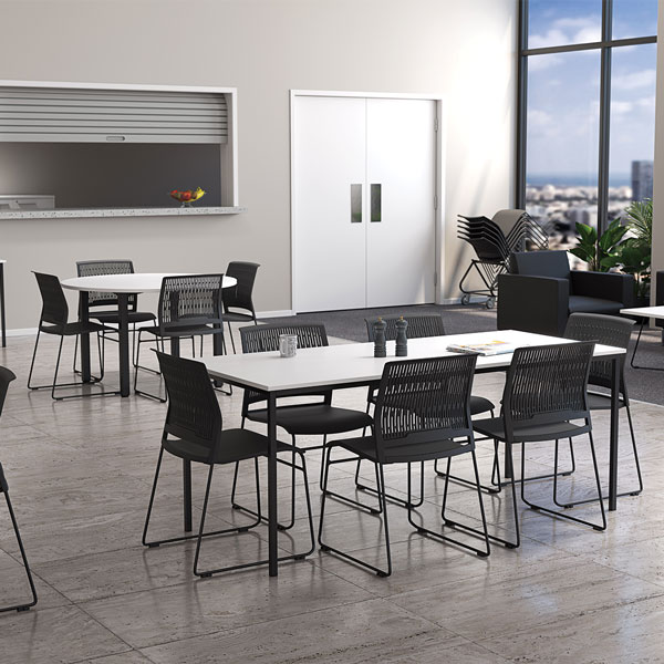KNIGHT CUBIT CANTEEN TABLE 1800 X 800MM WHITE TOP BLACK LEGS