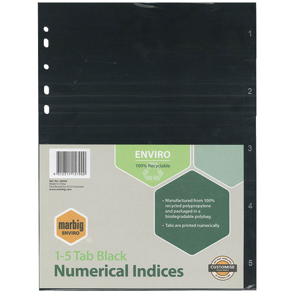 MARBIG ENVIRO DIVIDER PP 1-5 TAB A4 BLACK