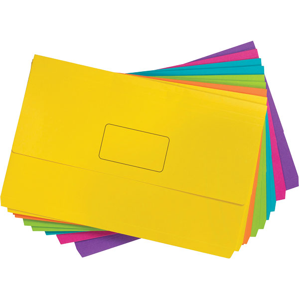MARBIG SLIMPICK FOOLSCAP DOCUMENT WALLET BRIGHTS ASSORTED PACK 10