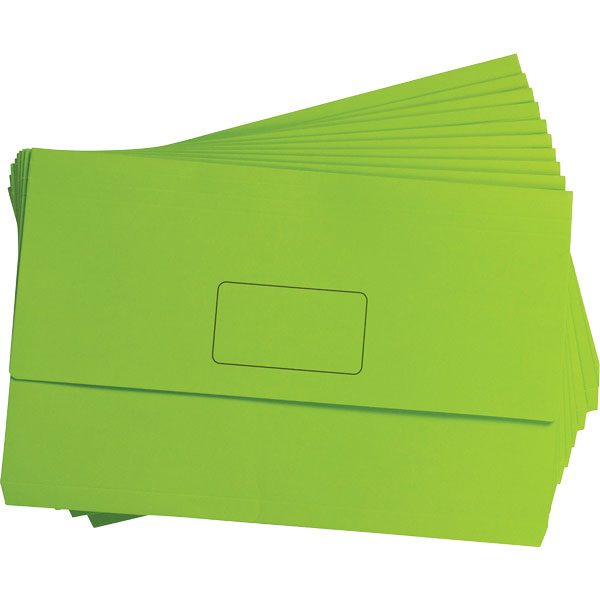 MARBIG SLIMPICK FOOLSCAP DOCUMENT WALLET BRIGHTS GREEN PACK 10