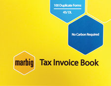 MARBIG TAX INVOICE BOOK 45 DL DUPLICATE NO CARBON REQUIRED 100 LEAF