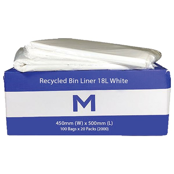 MPH RECYCLED BIN LINER 18L 450 X 500MM 20MU WHITE PACK 100