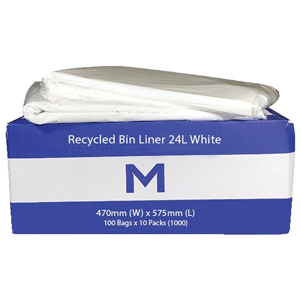 MPH RECYCLED BIN LINER 24L 470 X 575MM 30MU WHITE PACK 100