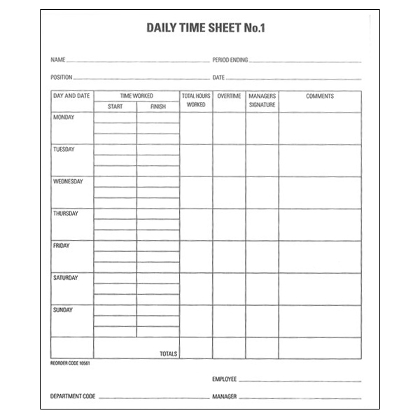 NOTE PAD NO.1 DAILY TIME SHEET 70GSM W205 X L240 MM 50 LEAF WHITE