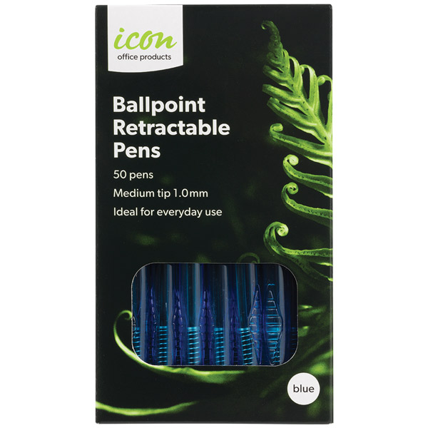 OKIN BALLPOINT PEN RETRACTABLE MEDIUM BLUE PACK 50