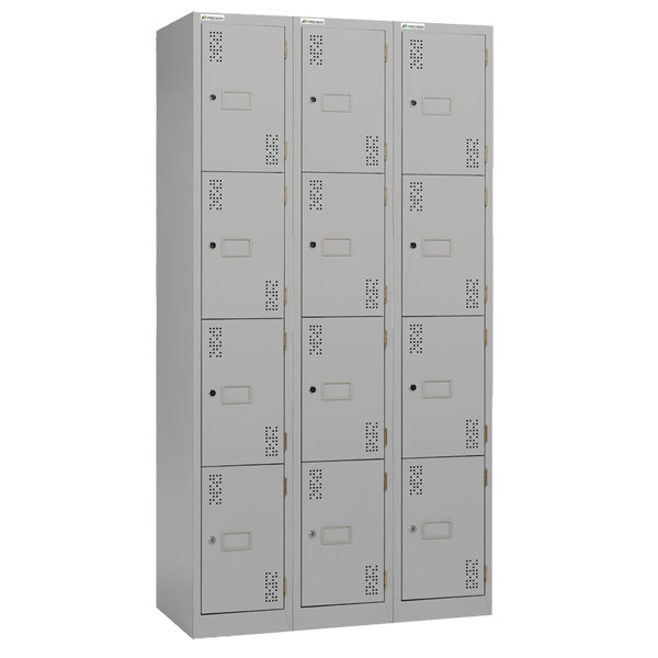 PRECISION CLASSIC LOCKER 4 TIER BANK OF 3 W900 X D457 X H1800MM SILVER GREY