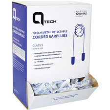 QTECH EARPLUGS DISPOSABLE METAL DETECTABLE FOAM CORDED BLUE BOX 100