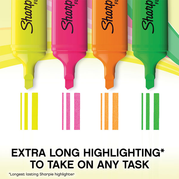 SHARPIE FLUO XL HIGHLIGHTER FLAT TANK CHISEL ASSORTED PACK 4