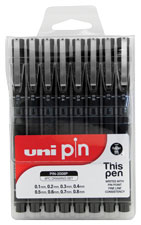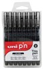 UNI PIN FIBRE TIP PEN 200 PERMANENT 8 PIECE SET 0.1MM-0.8MM BLACK