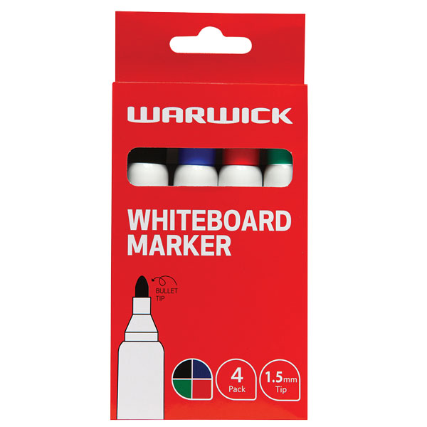 WARWICK WHITEBOARD MARKER BULLET TIP ASSORTED PACK 4