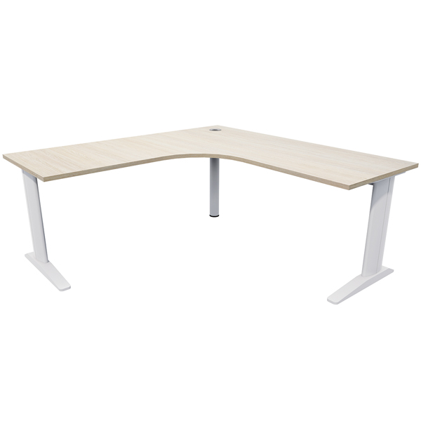 ZEALAND MIRAGE WORKSTATION W1800 X W1800 X D600 X H725MM SILVER FRAME SEASONED OAK TOP